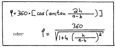 1. Man errechne den Winkel *f des entsprechenden Kegelmantels: